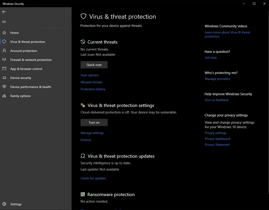 اضغط على Virus & Threat Protection. راح تظهر لك هذي الشاشة: