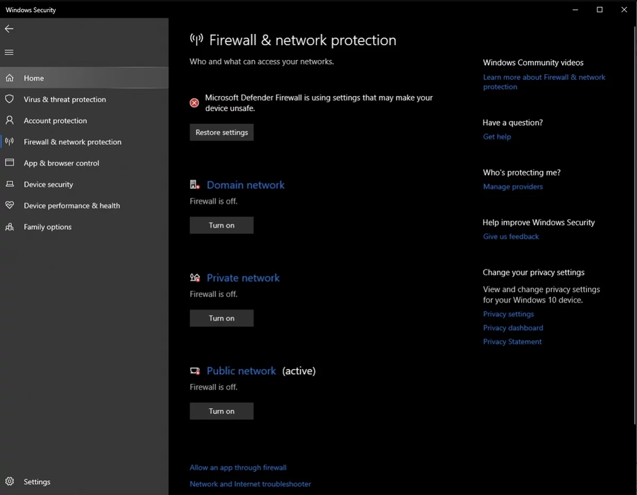 ارجع إلى Windows Security واضغط على Firewalls & Network Protection. راح تشوف الشاشة التالية: