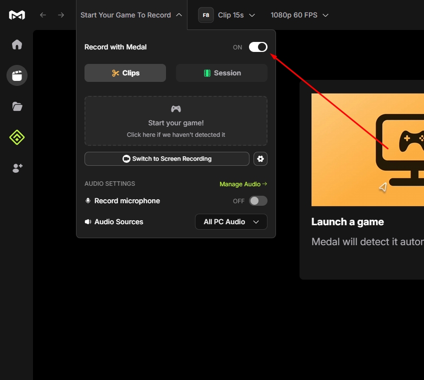 تأكد أنك تقوم بإيقاف تشغيل هذا الخيار داخل تطبيق Medal. طبق إعدادات الجرافيكس في اللعبة بالضبط كما هي موضحة في الصور التالية:
