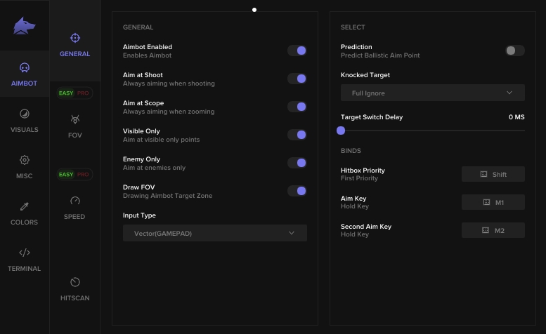 هذه الإعدادات مخصصة للاستخدام الآمن، وهي مناسبة للي يبي يلعب بدون ما يوضح عليه أنه يستخدم هاك. مثالية للوضع الخفيف "Legit" بأقل قدر من المساعدة وبأفضل شكل.